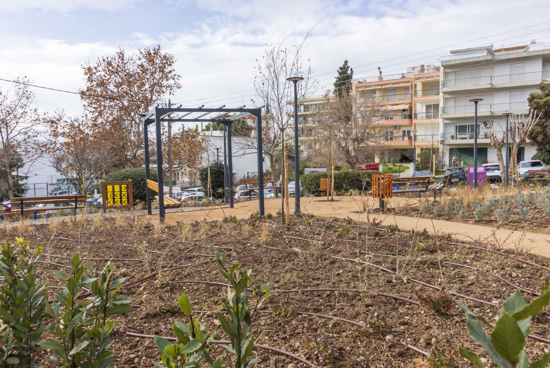 Στο πάρκο, συνολικής έκτασης 170 τετραγωνικών μέτρων, φυτεύτηκαν 456 -κυρίως αρωματικά- φυτά (λεβάντα, θυμάρι, δενδρολίβανο, ρίγανη και βιβούρνο) και δέντρα (φλαμουριές, πλατάνια και νεραντζιές), ενώ έγινε αναβάθμιση του αστικού εξοπλισμού. Για τη διαμόρφωση του χώρου χρησιμοποιήθηκαν αποκλειστικά φυσικά υλικά με ελάχιστο σκυρόδεμα και καθόλου τσιμέντο, καθώς επίσης ανανεώσιμες πηγές ενέργειας για τον «έξυπνο» φωτισμό.